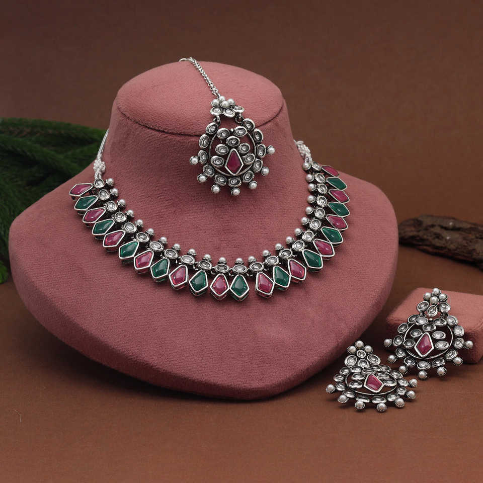 1 Piece Of Necklace,1 Pair Of Earring,1 Piece Of Maang Tikka