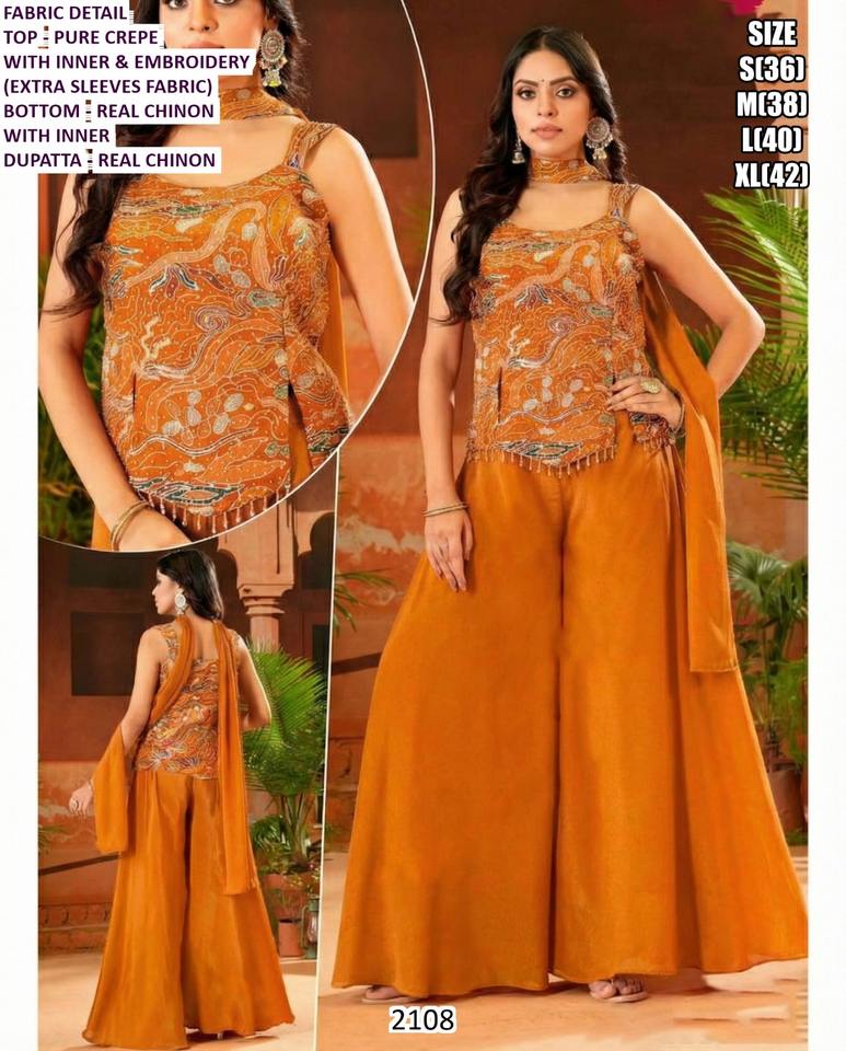 Material:bhandhani dupatta with embroidered crepe & gerogette
