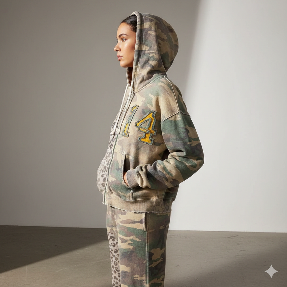 Ensemble zippé Ranzia avec strass, Survêtement zippé intégral Ranzia, Ensemble Ranzia grande taille avec strass, Ensemble Ranzia effet vieilli avec strass