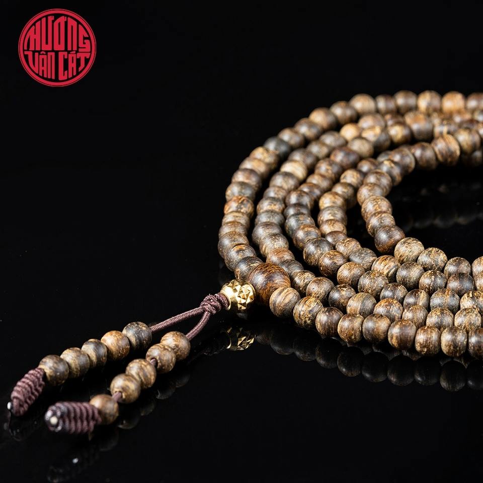 Bracelet en bois d'agar rare, 216 perles de 4 mm, entièrement coulant, authentique, en bois d'oud à haute teneur en résine, Mala de prière, fait main, de luxe