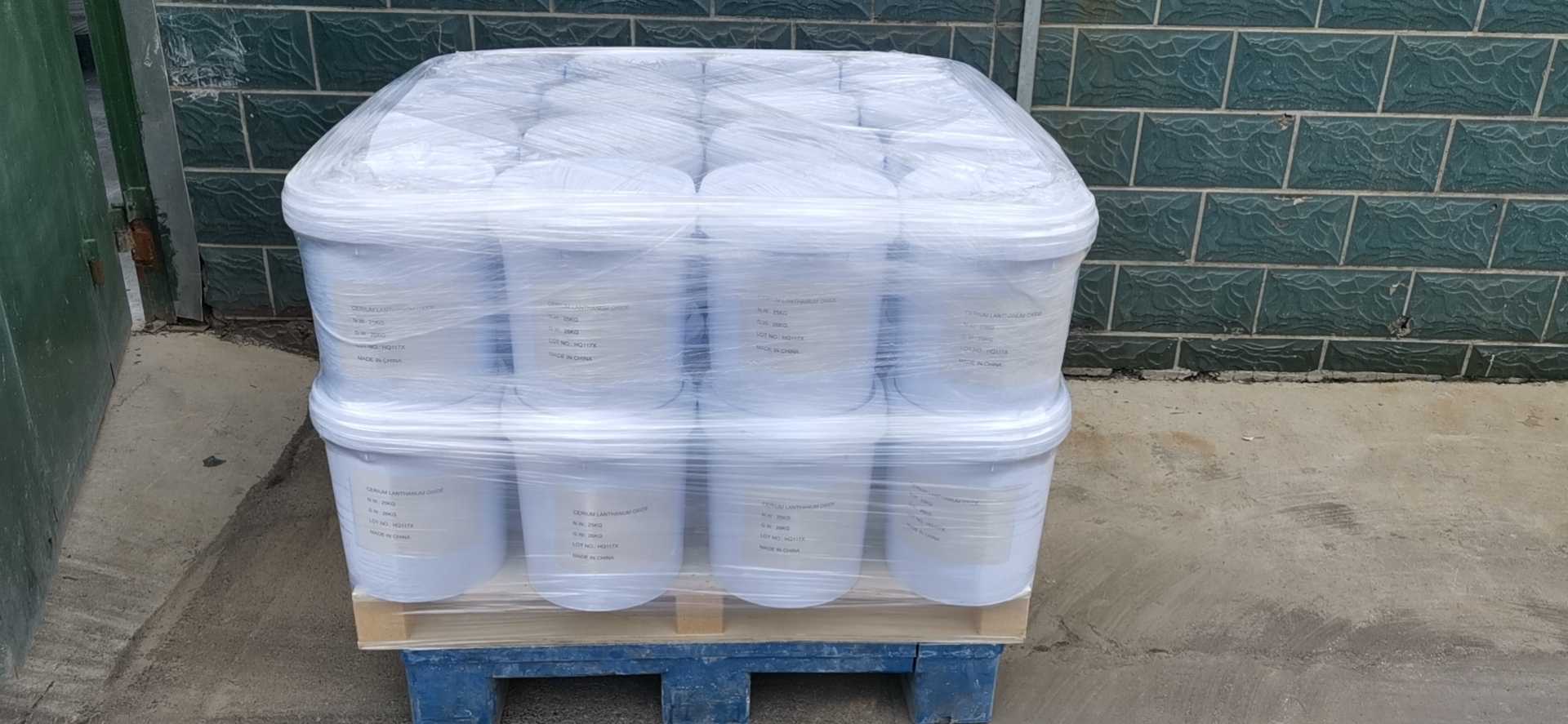 Poudre d'oxyde de cérium est emballé dans le sac, 50kg par sac, 1Ton par palette
