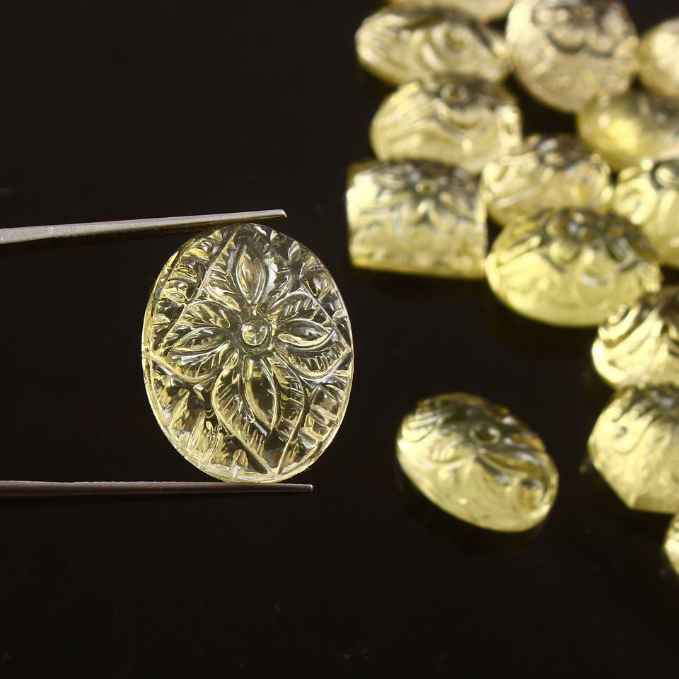 Quartz citron rare sculpté pierre précieuse qualité de qualité sculpture à la main fabrication de pierres précieuses ART moghol pierre précieuse sculptée meilleure pour les utilisations de bijoux