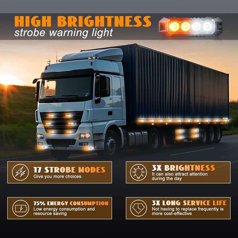 Raryloy 4PCS 12 LED Feux de Grille Stroboscopiques d'Urgence pour Camion, Fonction Synchronisation, Mini Balise de Danger Étanche 12-24V, Lumières en Aluminium+PC