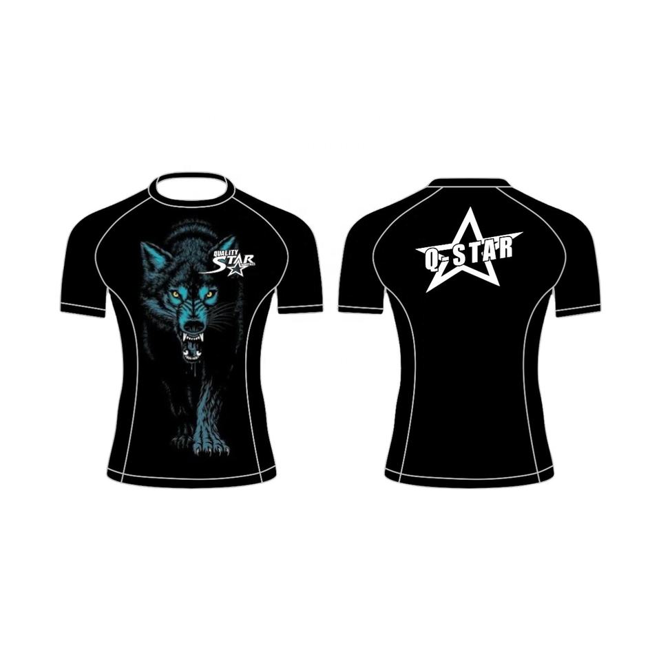 Maillots de protection (Rash Guards) en gros, personnalisables avec logo, manches courtes, unisexe, respirants, meilleure qualité, vêtements d'arts martiaux, couleurs et tailles sur mesure