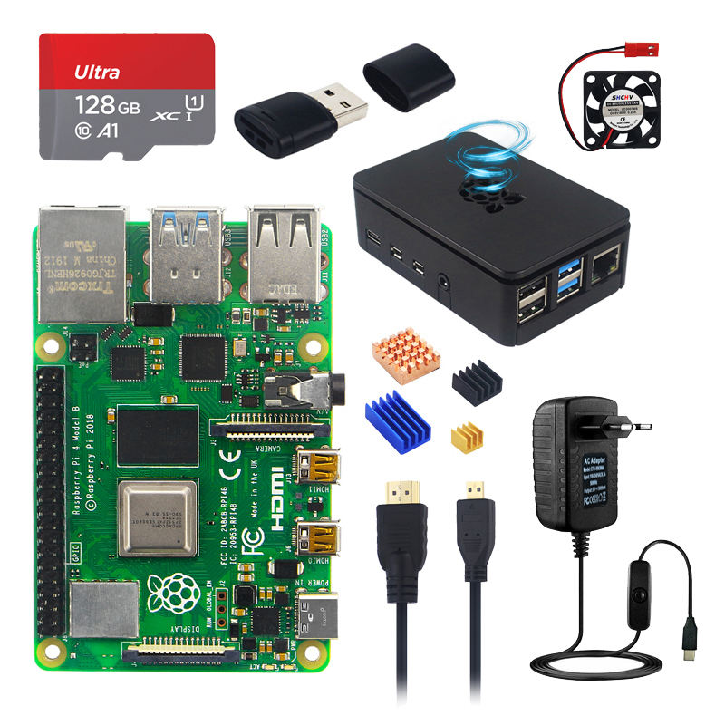 Kit de carte de développement Raspberry Pi 4 modèle B avec boîtier ABS 32/64GB carte SD adaptateur secteur ventilateur dissipateur de chaleur câble vidéo