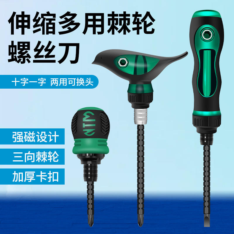 Ratchet Screwdriver Set Phillips Bit Magnetic Telescopic Dual Purpose Diy Tool With Three Way Adjustment