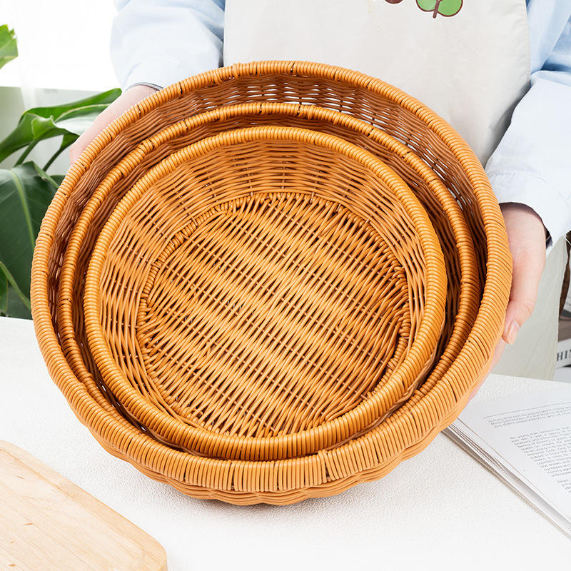 Ensemble de paniers en rotin, 3 pièces, paniers de rangement circulaires marron écologiques pour fruits, pain, légumes, utilisation en cuisine