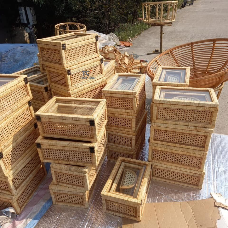 Boîtes d'affichage tissées de canne et de rotin