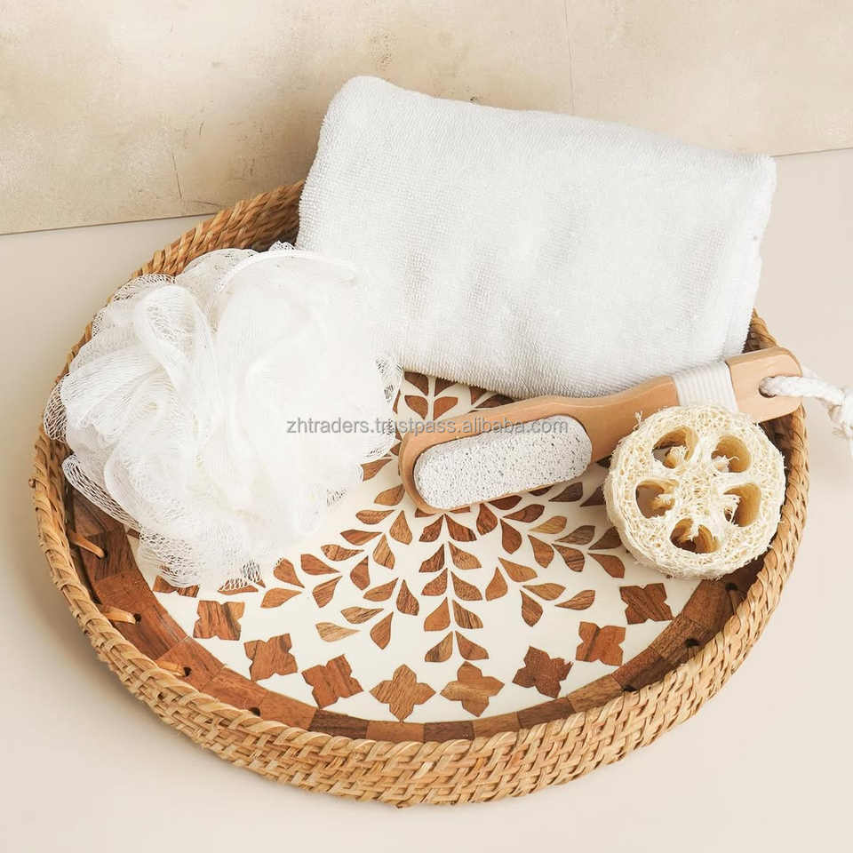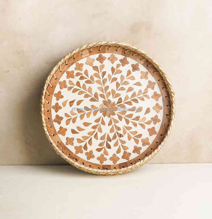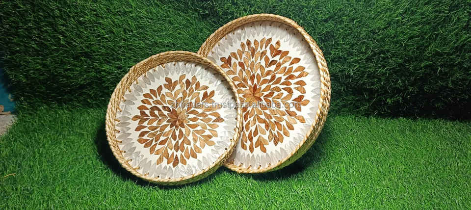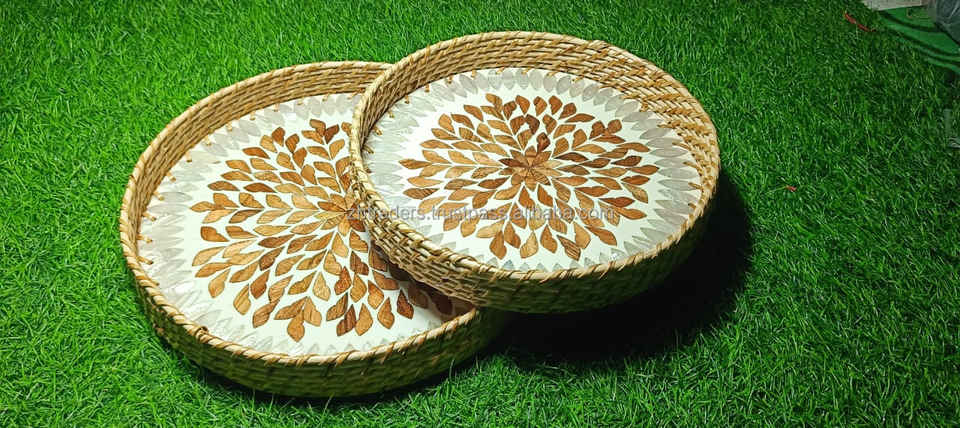 Rattan Cane & Mother of Pearl Tray Set Eco-Friendly Handmade Dessert Trays for Ramadan Celebrations Eid Gifts and Wedding