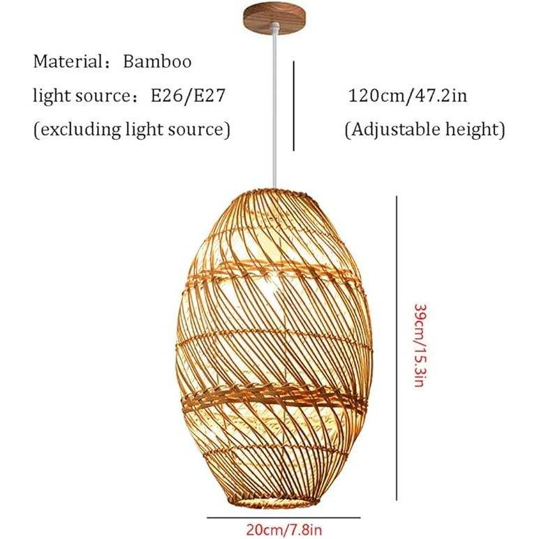 Rattan Wicker Chandelier Pendant Lamp Shades Hanging Ceiling Light for Kitchen Island and Living Room