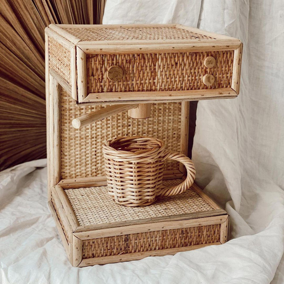 rattan kid toys coffee machine
