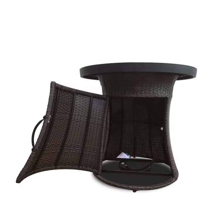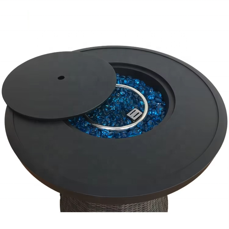 Table d'extérieur élégante et élégante en osier pour foyer à gaz en rotin sans fumée écologique 40000 BTU pour le jardin