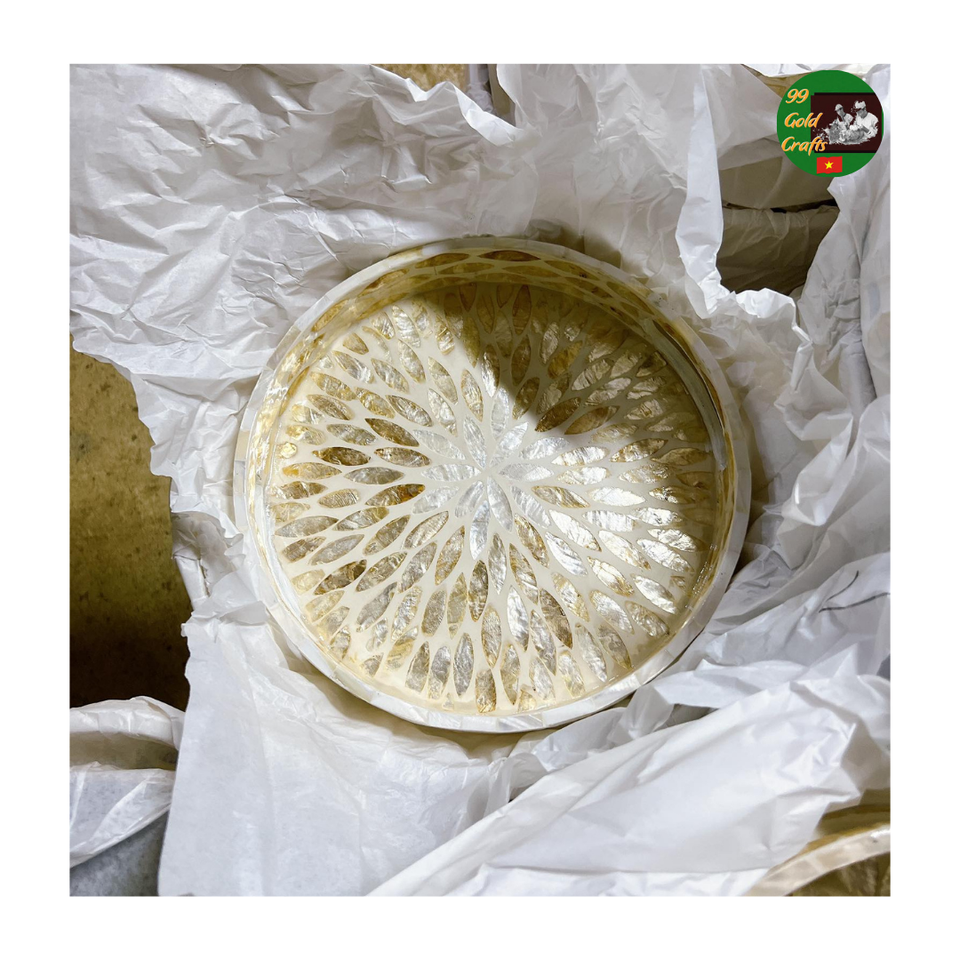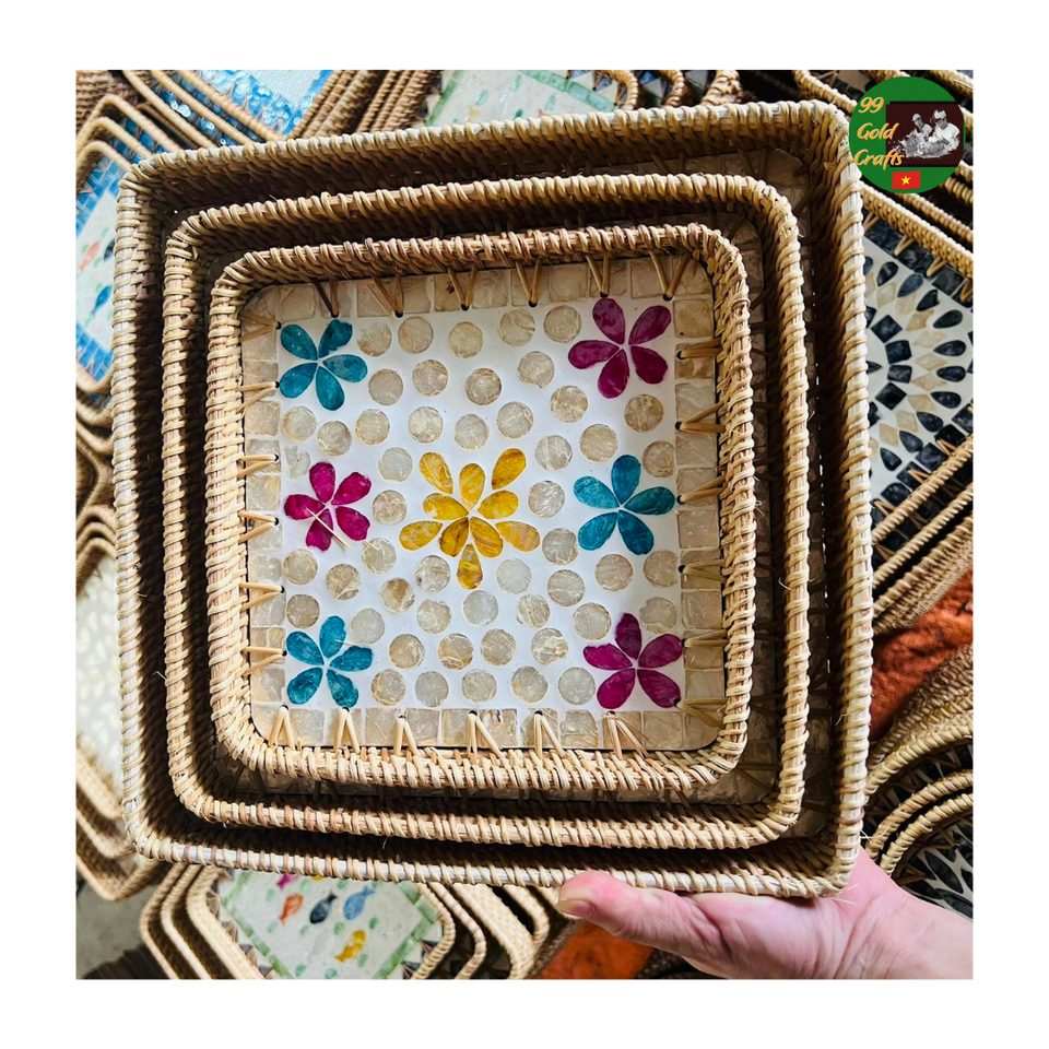 Rattan Mosaic Serving Tray Mixed Mother of Pearl Handmade Natural Tray for Home Decor and Holding Tea Coffee Snack