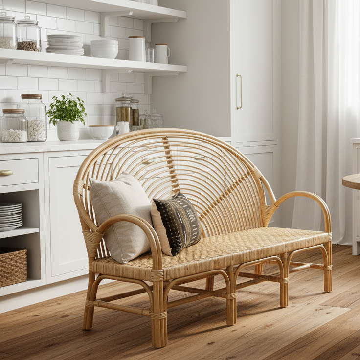 Banc en rotin pour l'extérieur, utilisation en salle à manger et à l'hôtel - Design minimaliste, confortable et durable, respectueux de l'environnement, utilisation dans le salon et au parc
