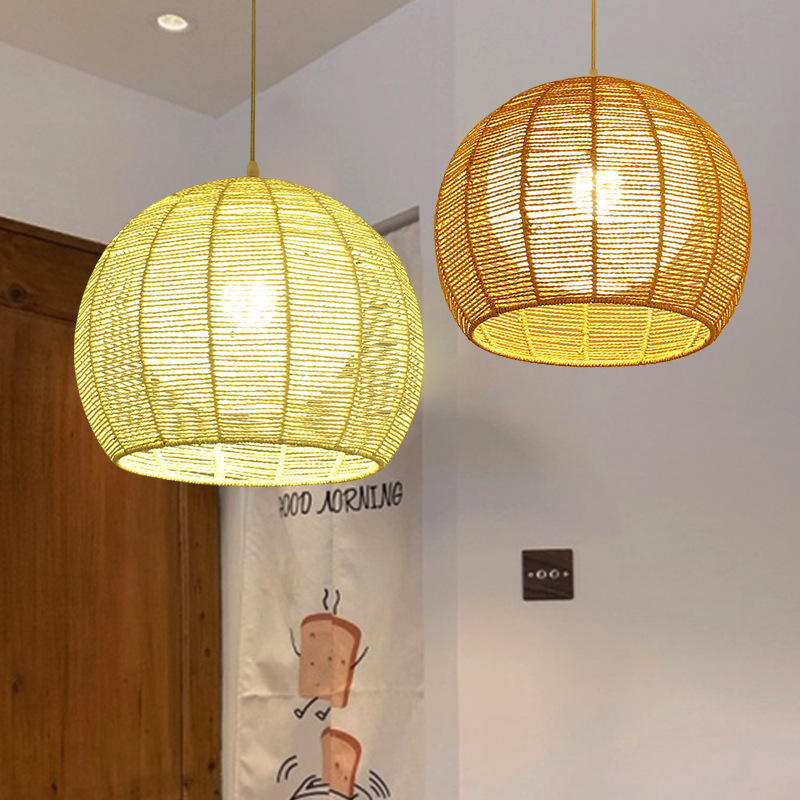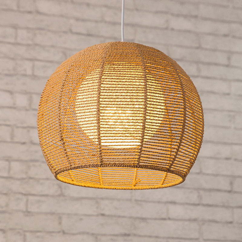 Lampe suspendue en rotin, ronde, base d'ampoule E27, tête simple, pour éclairage de salon de thé, restaurant, balcon