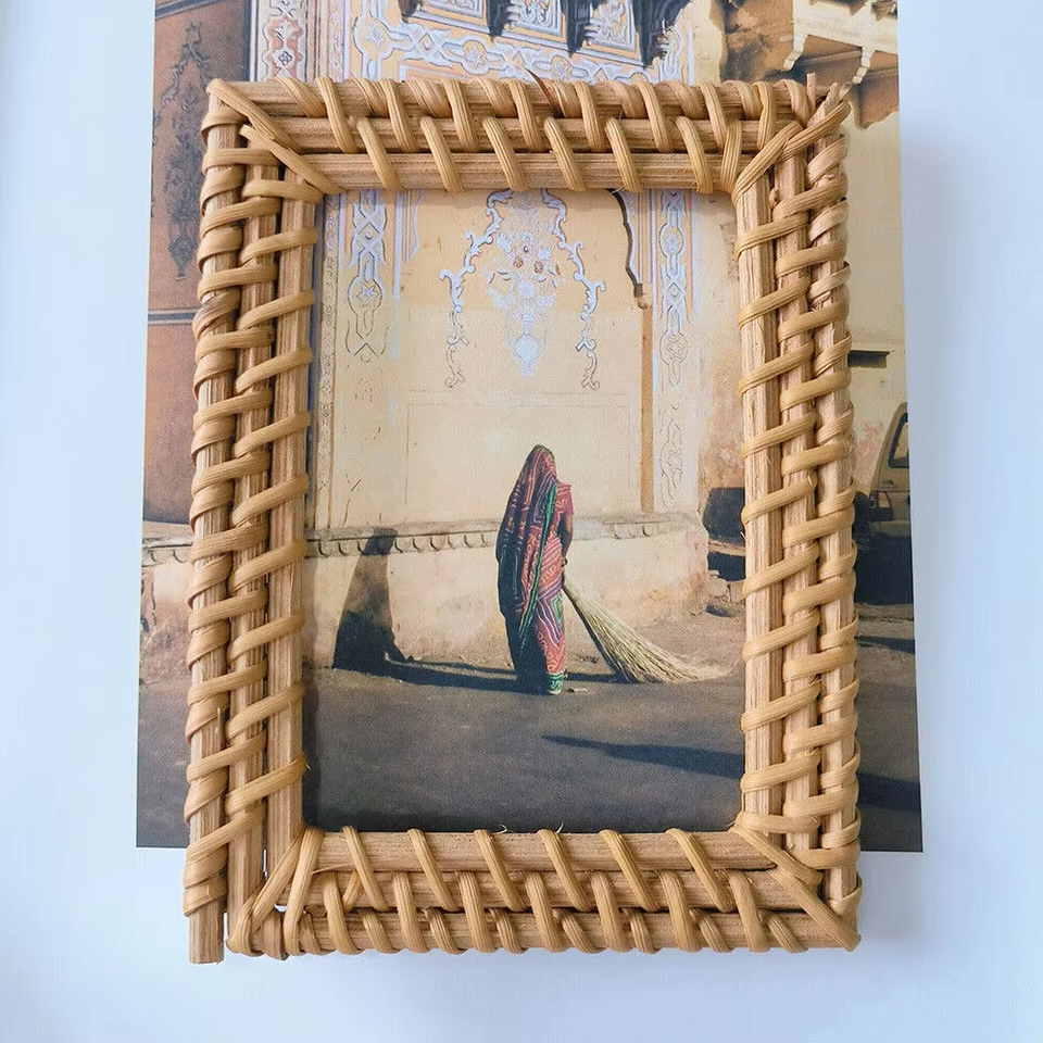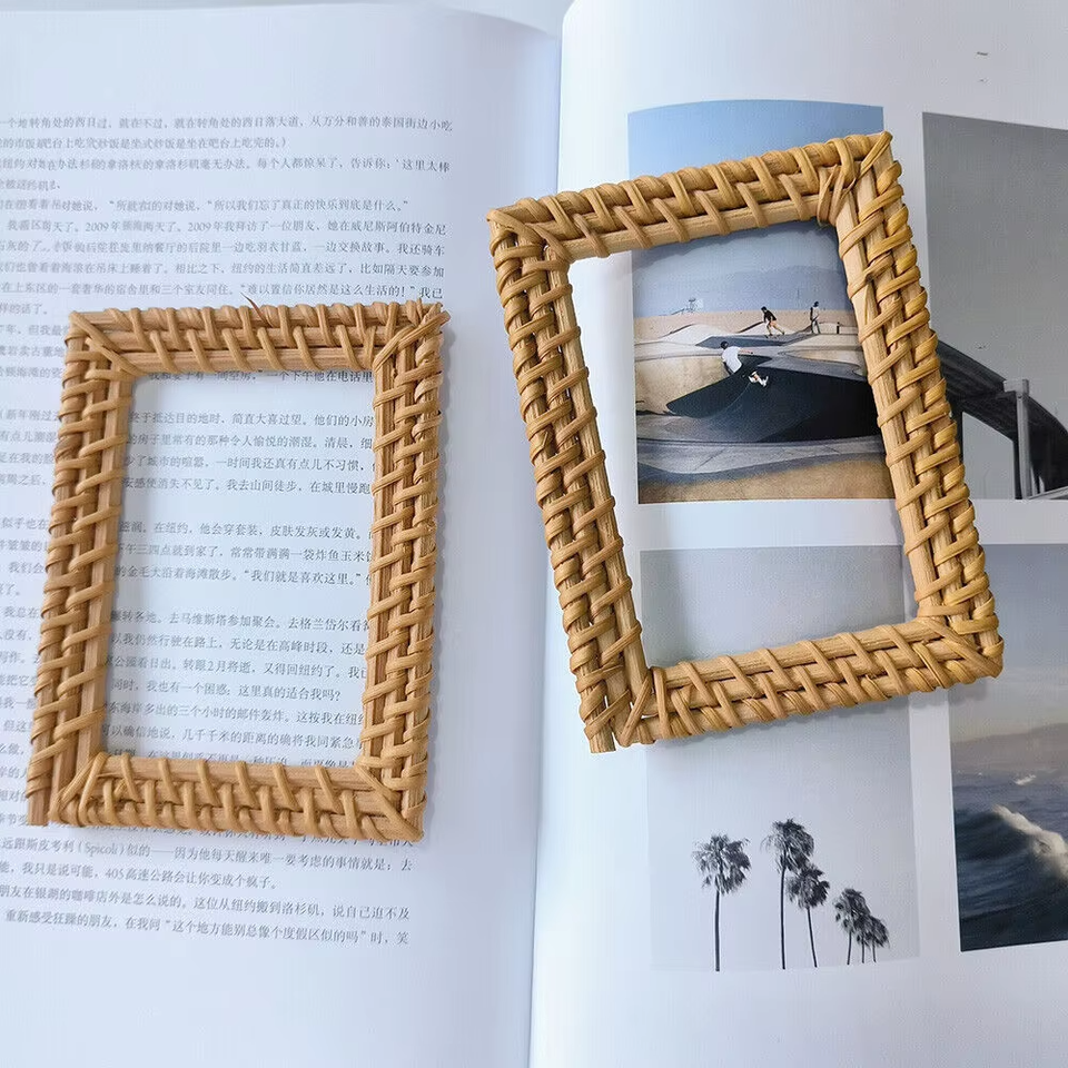 Cadre photo en rotin Boho fabriqué au Vietnam matériau écologique utilisé pour la décoration de la maison cadres photo en gros