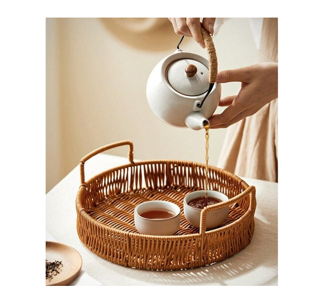 Plateau de service en rotin, fabrication de plateau de service en rotin décoratif pour verres à vin, pour cadeau