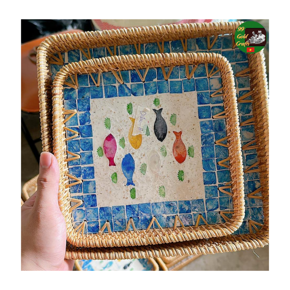 Rattan Serving Tray Mix Mother of Pearl Mosaic Natural Handmade Tray for Table Decor and Storage At Beautiful Ceramic Tray
