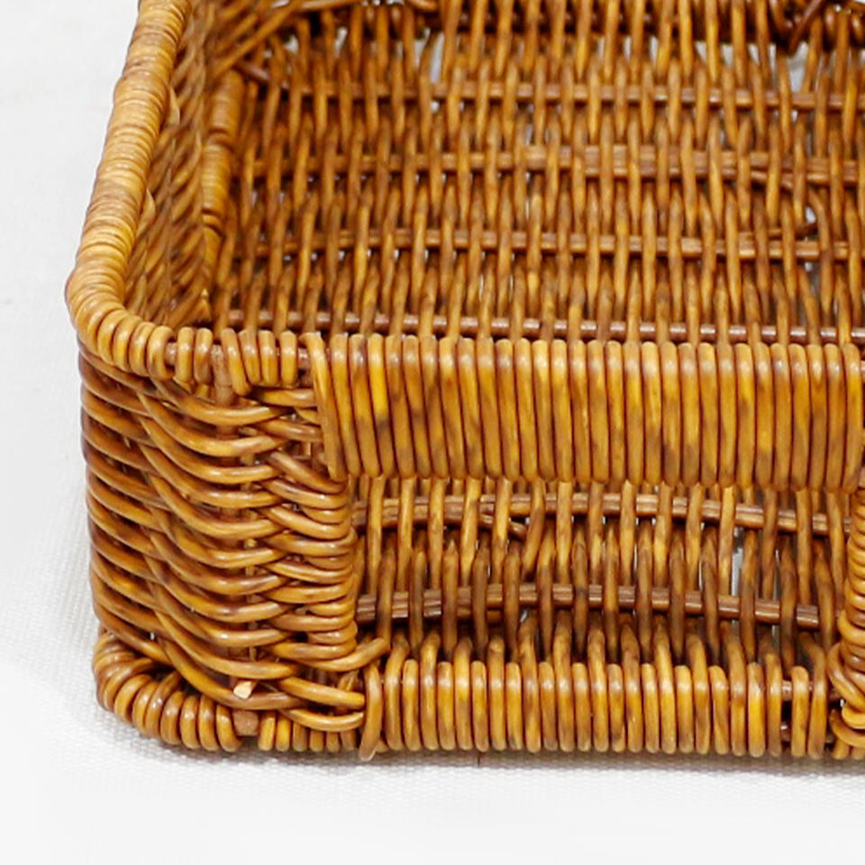 Panier de rangement en rotin tissé à la main, plateau à pain rectangulaire avec poignées intégrées