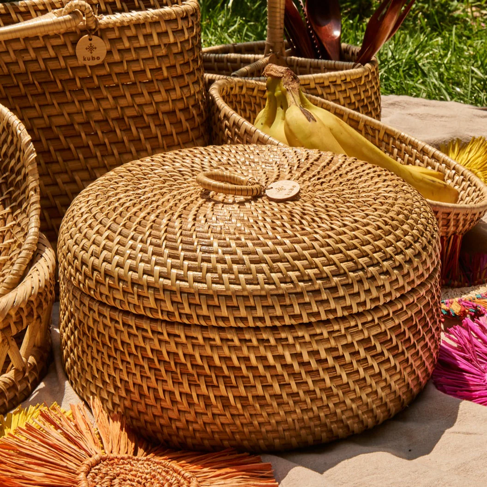 Nom:Taille de la boîte de rangement en rotin : D11,5 x H6,5 pouces