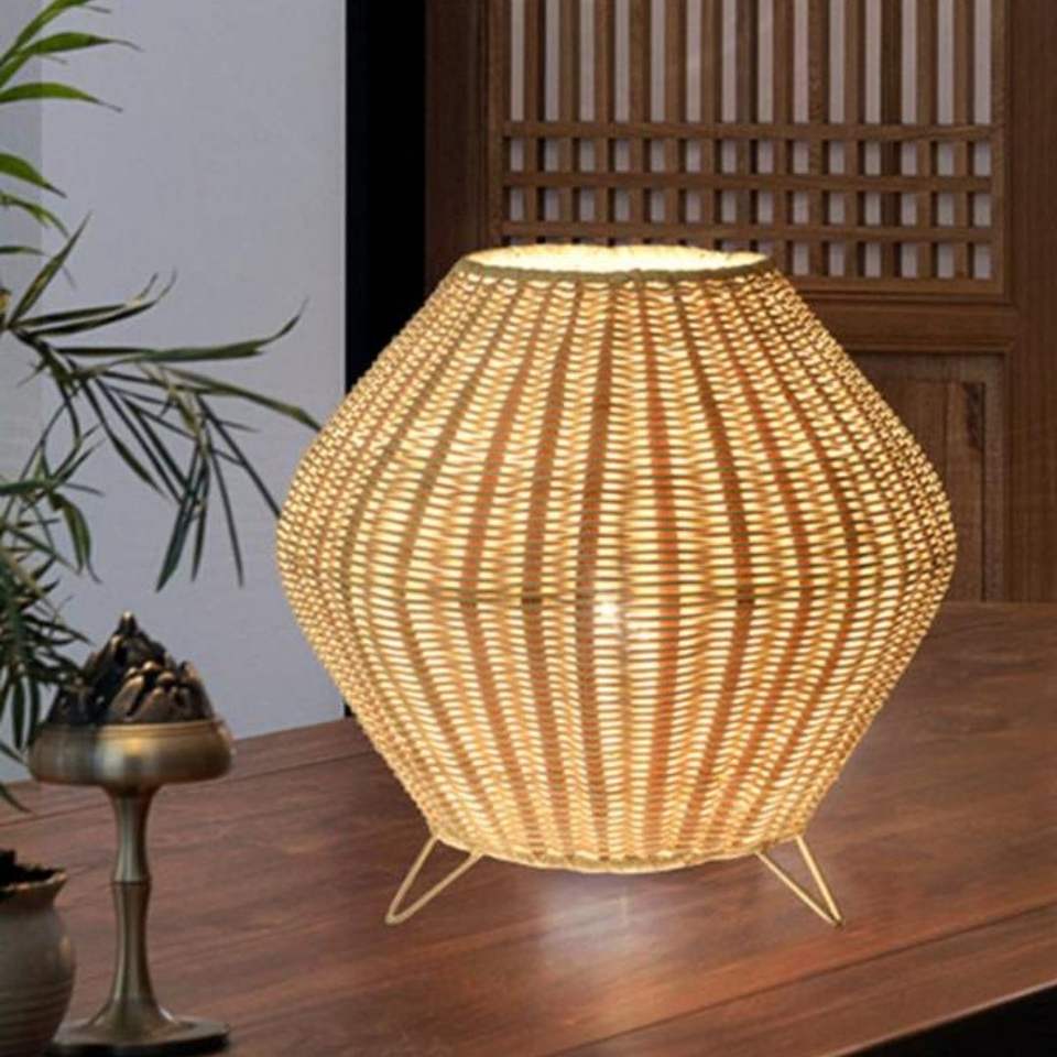 Lampe de table en rotin développée comme un élément d'éclairage décoratif utilisant des matériaux en rotin naturel pour les espaces intérieurs