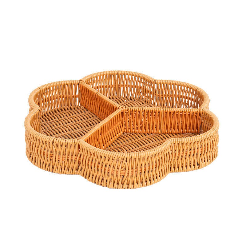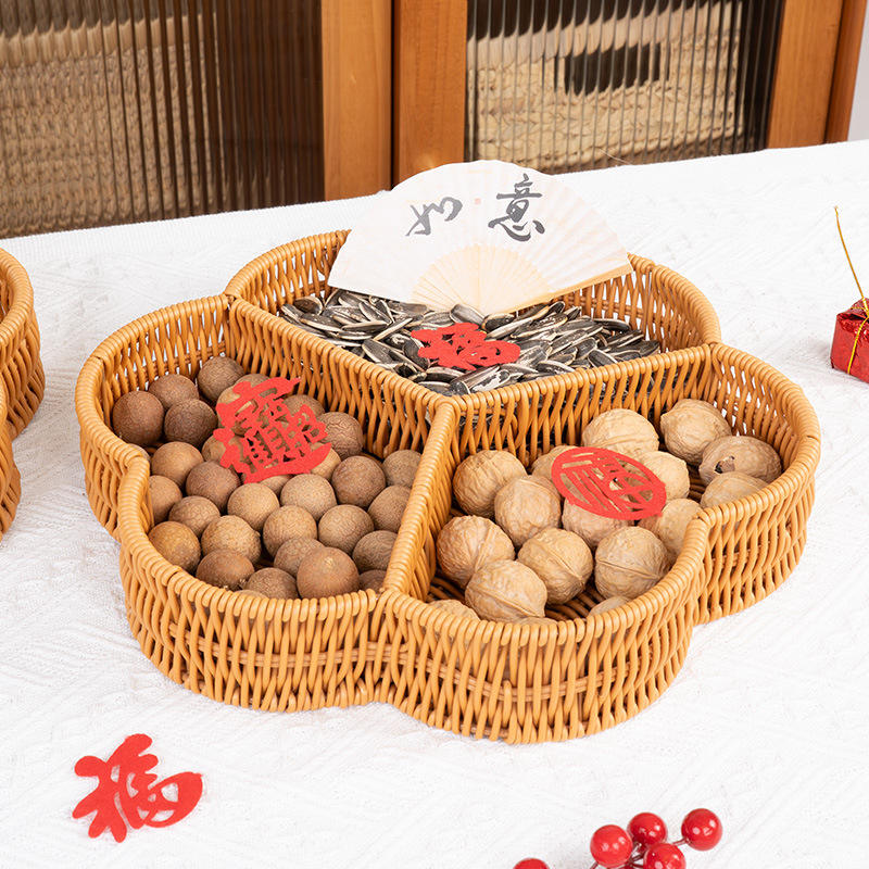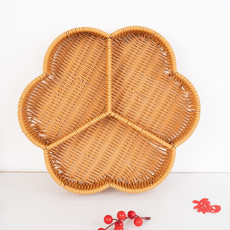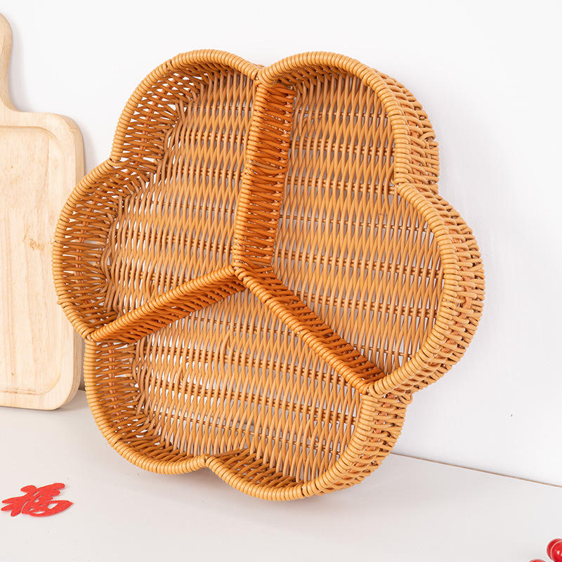 Panier de rangement en rotin à trois compartiments, forme fleur de prunier marron, écologique, pour fruits et légumes, pour salon et café