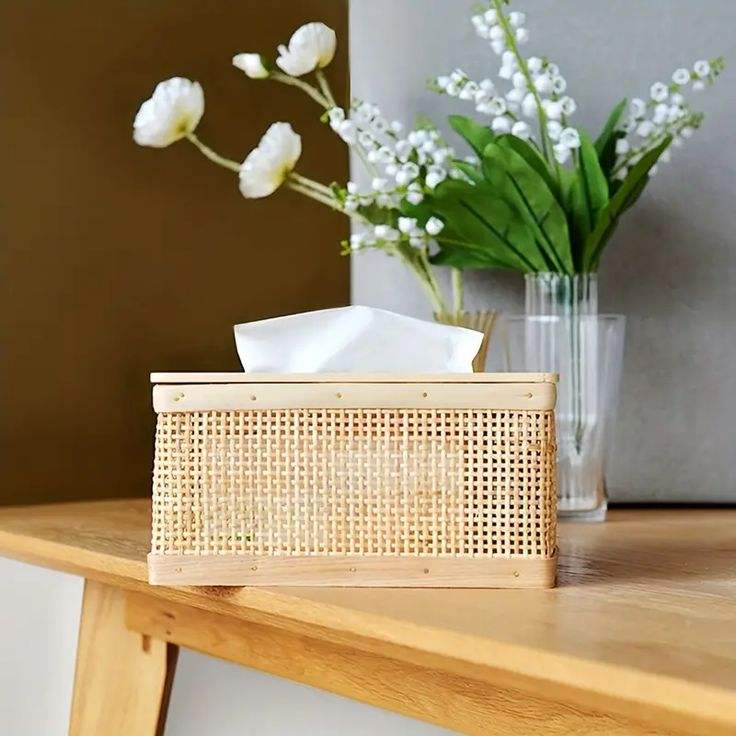 Boîte à mouchoirs en rotin avec finition laquée lisse offrant un accent décoratif élégant et fonctionnel pour tout espace de vie