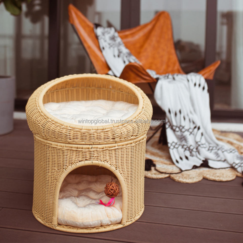 Lit pour chat en rotin à deux niveaux Lit pour animal de compagnie Maison pour chien Quatre saisons Lit universel amovible et lavable