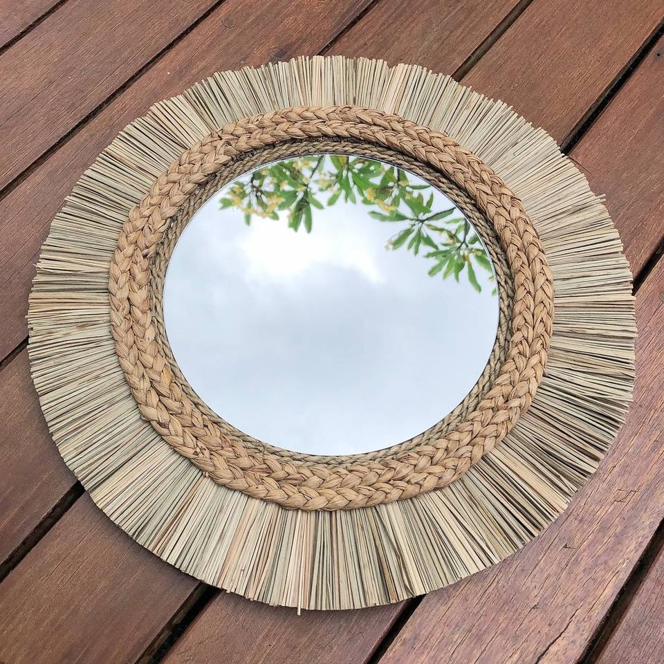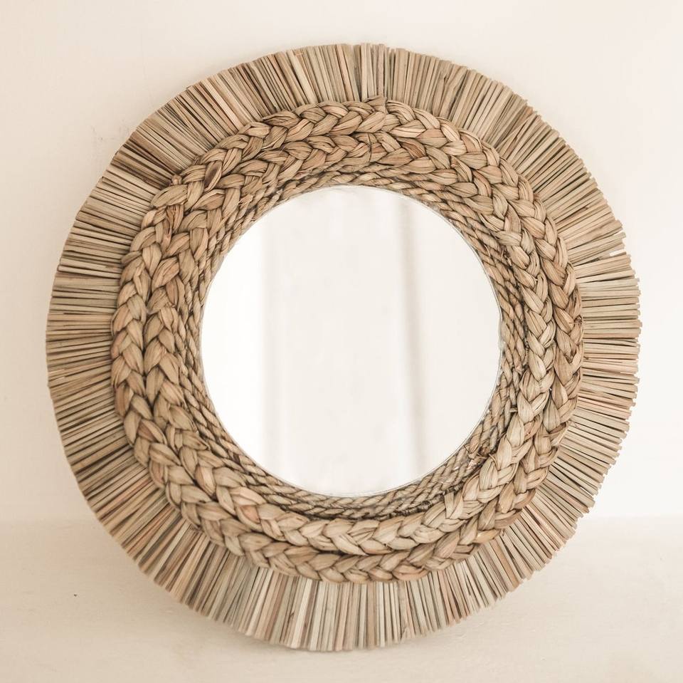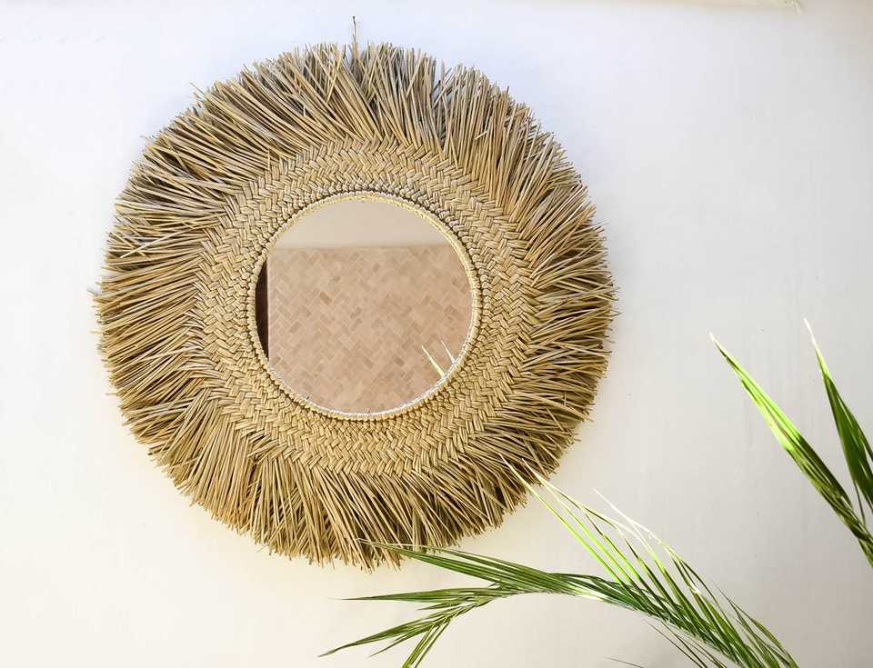 Miroir mural rond en rotin de style moderne Miroir décoratif suspendu fait main du Vietnam