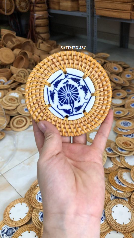 Dessous de verre en rotin et osier Tapis et tampons pour tasses à thé et cafés Dessous de verre en rotin avec logo OEM pour restaurant et hôtel