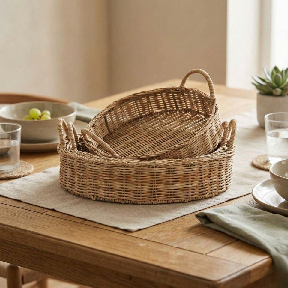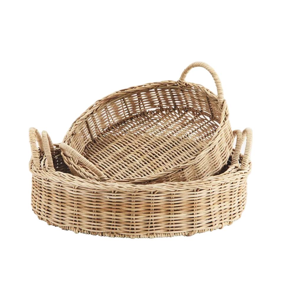 Plateau en rotin tressé, plateau de service festonné en rotin écologique, fabricant de plateaux en osier durables avec service OEM ODM