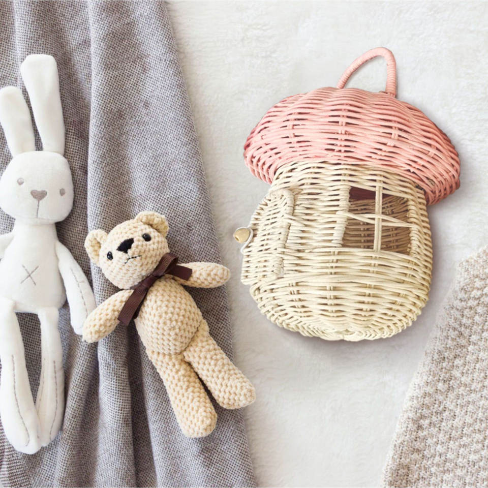 Rattan Box Bag Handwoven Wicker pink Mushroom Shape Basket Bags Best Choice for Kids Children Baby Birthday Gifts
