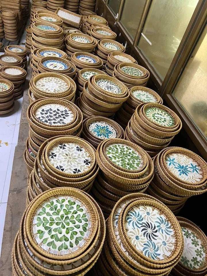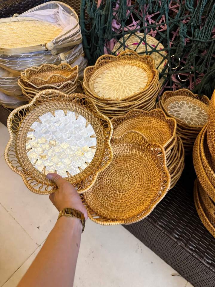 Rattan mop tray Vietnam wholesale for office desk stationery serving beverages in tropical resort lounges sophisticated details
