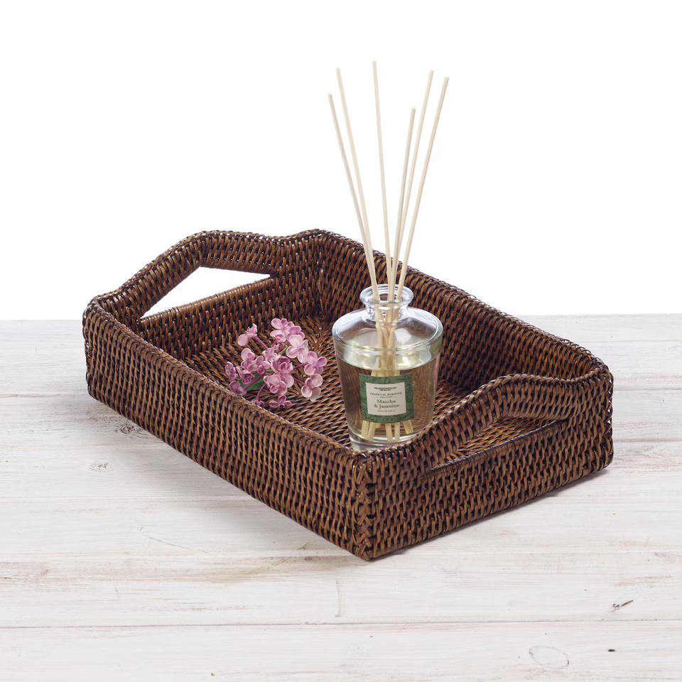 Plateau de service en rotin de forme rectangulaire avec poignée, petite taille, parfait pour le stockage de fruits secs