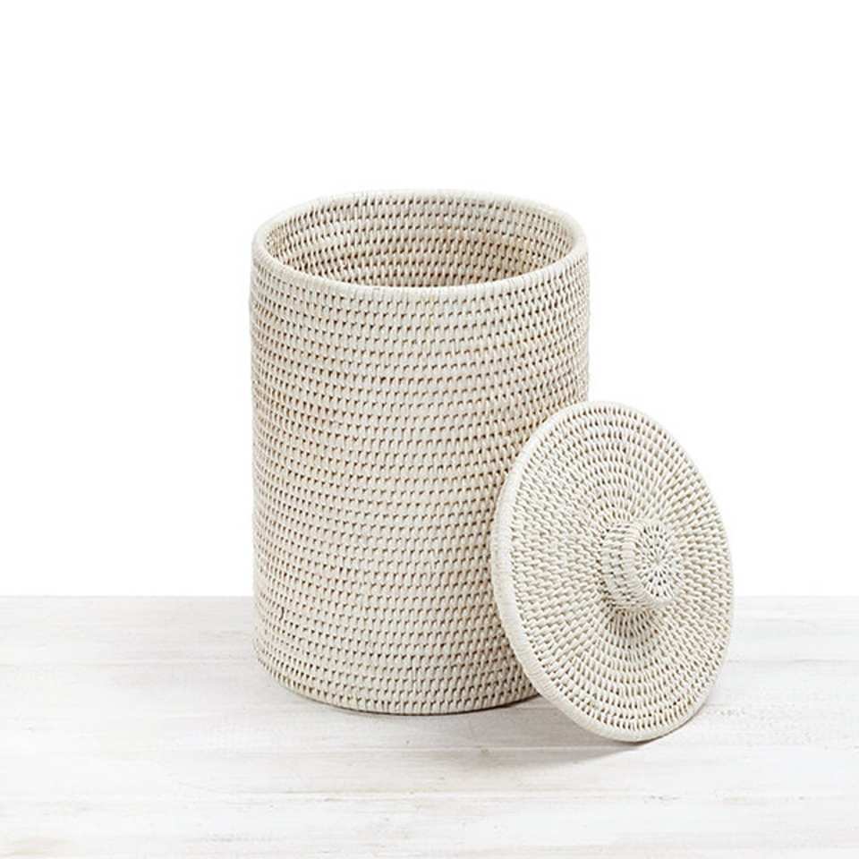 Rattan trash bin for bathroom vanity hand-woven basket organizer low price waste basket bins