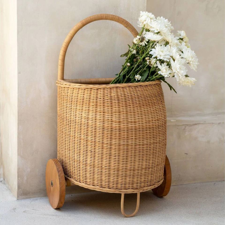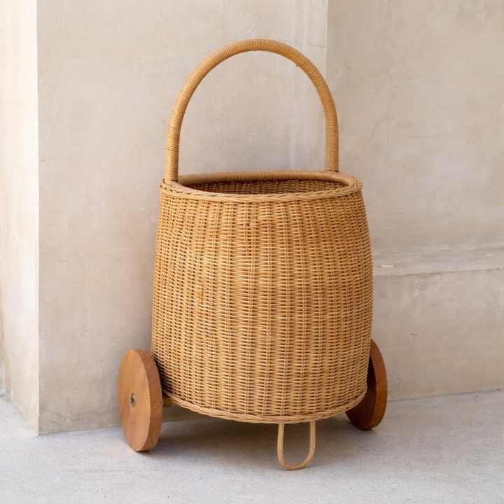 Chariot en rotin avec roulettes, panier de rangement pour enfants, chariot à jouets, sac de transport