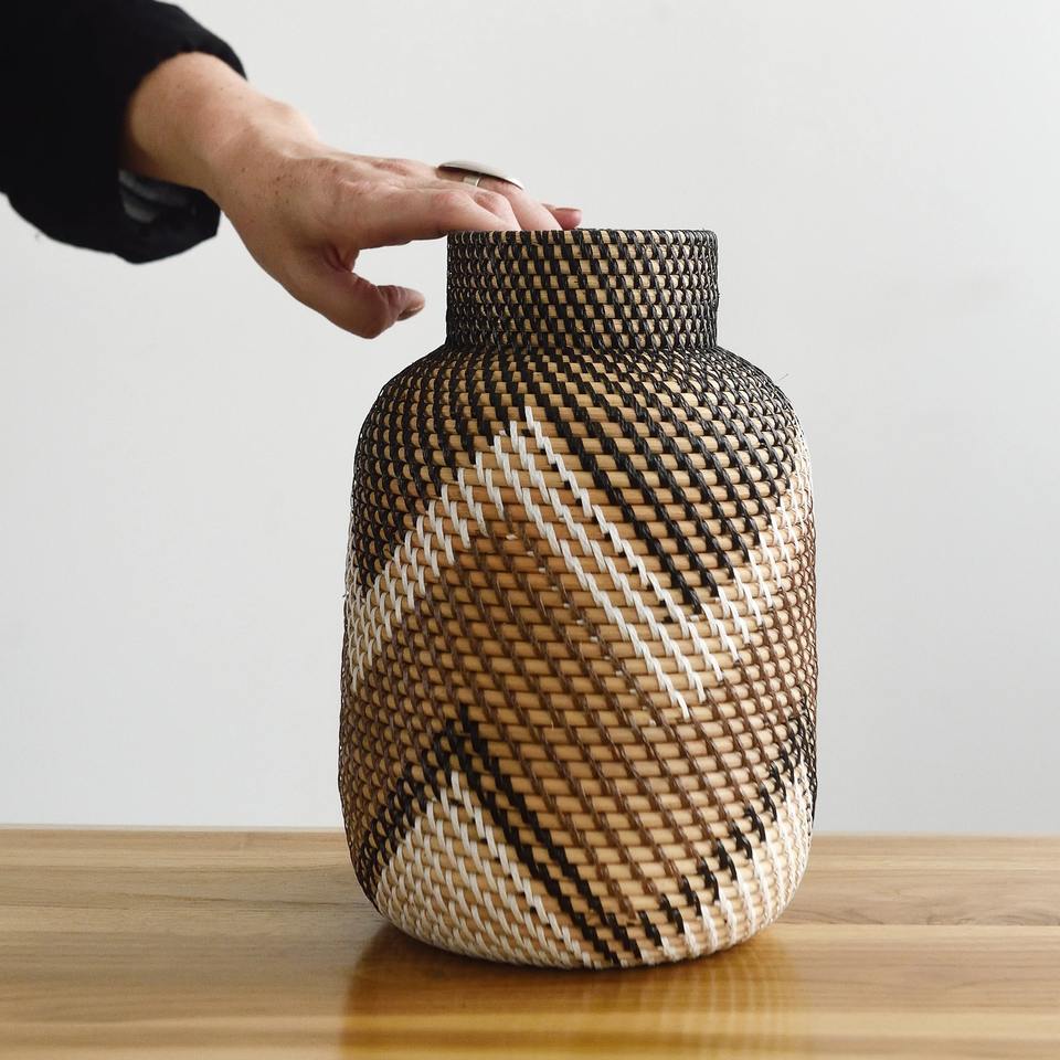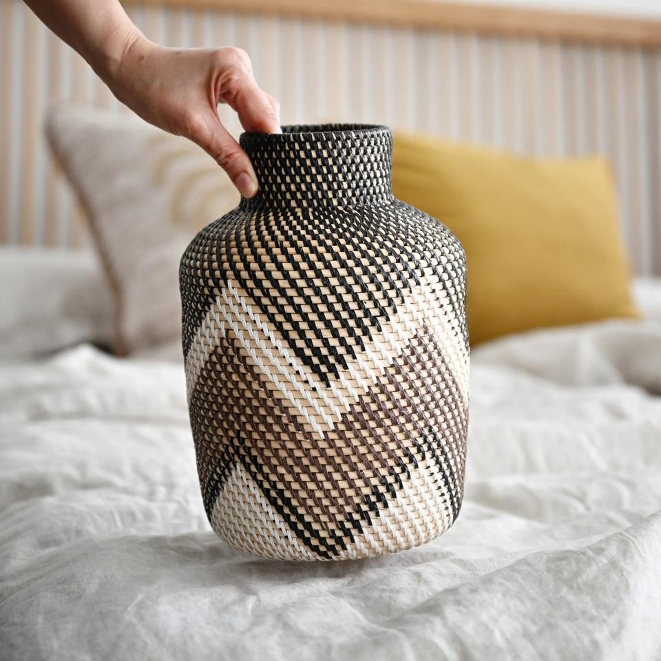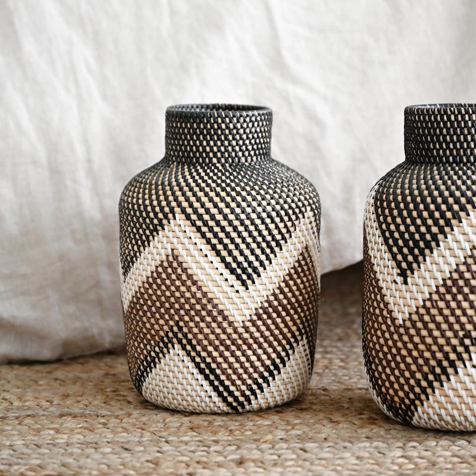 Size: D7,5 x H11,8 inch:Decorative rattan vase with black, brown and white pattern