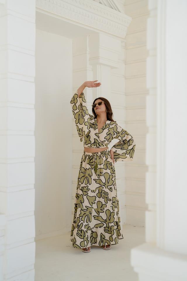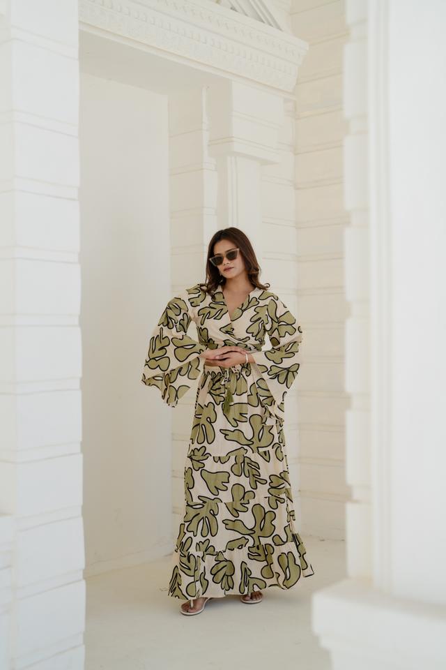 Raven Bronze Petal Bubble Sleeve Midi Dress Boho Garden Gala Sundress Polished Feminine Floral Natural Waist Eco-Friendly 100%