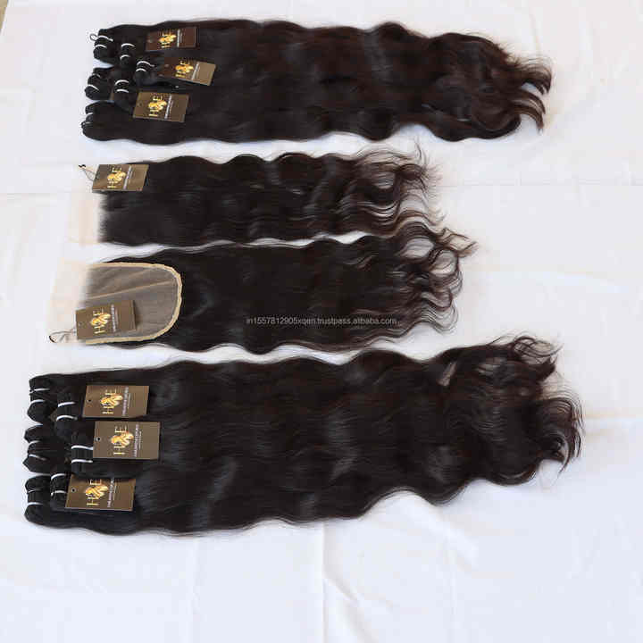 Tissage en lot brésilien naturel Remy, cheveux vierges bruts, non traités, avec Closure suisse HD