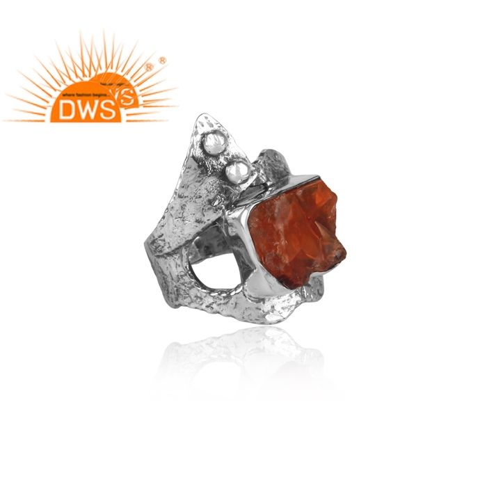 Bague de Protection pour pierre précieuse, pierre de cristal cornaline brut, argent Sterling 925, Boho, fabrication de bijoux