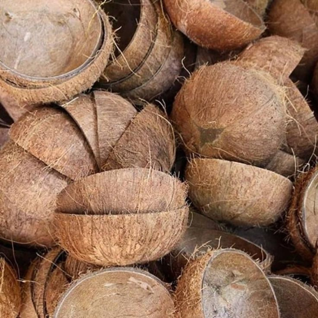 Coquille de noix de coco sèche avec fibres et sans fibres