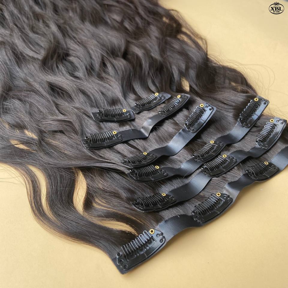 Extensions de cheveux vierges indiens bruts à clipser, ondulation d'eau, double trame, cheveux humains rebondissants, Guangzhou Chine