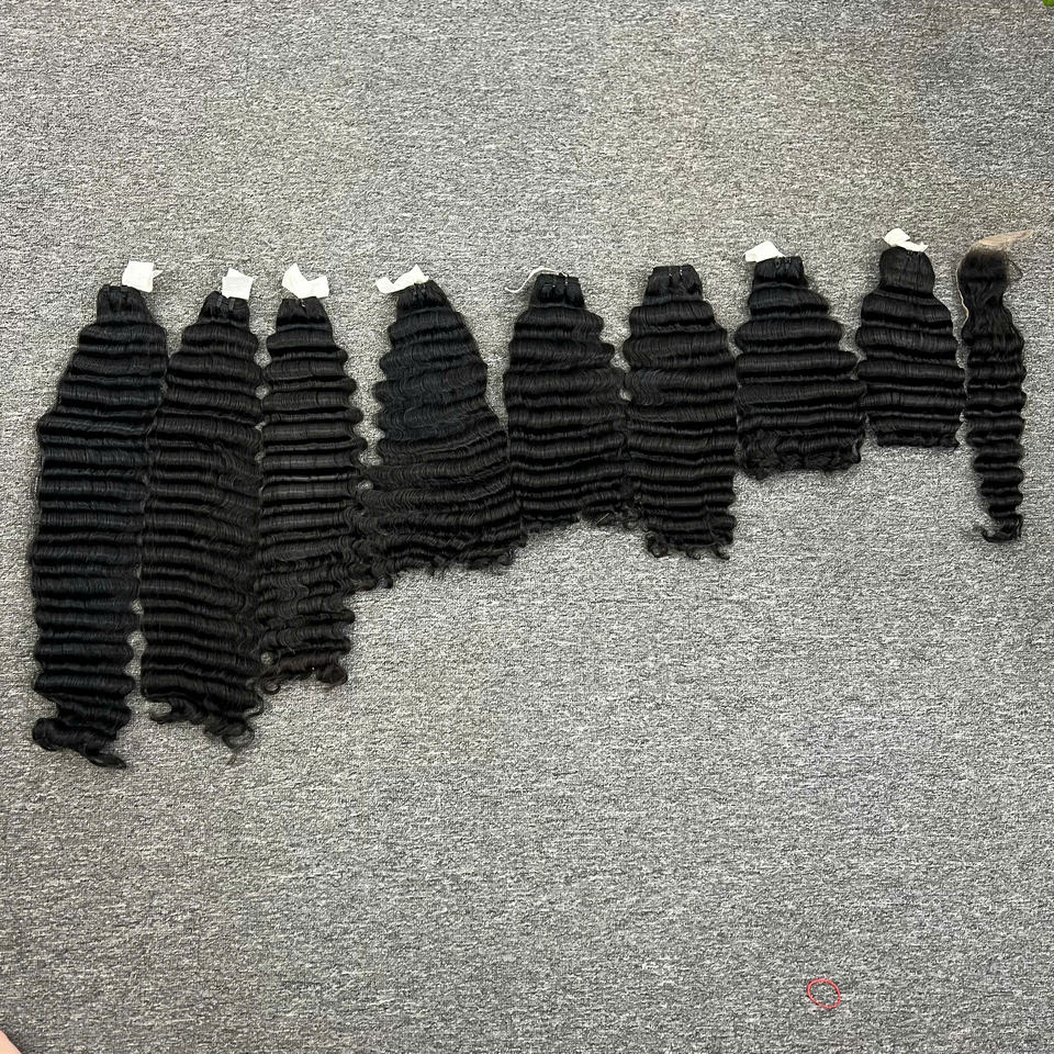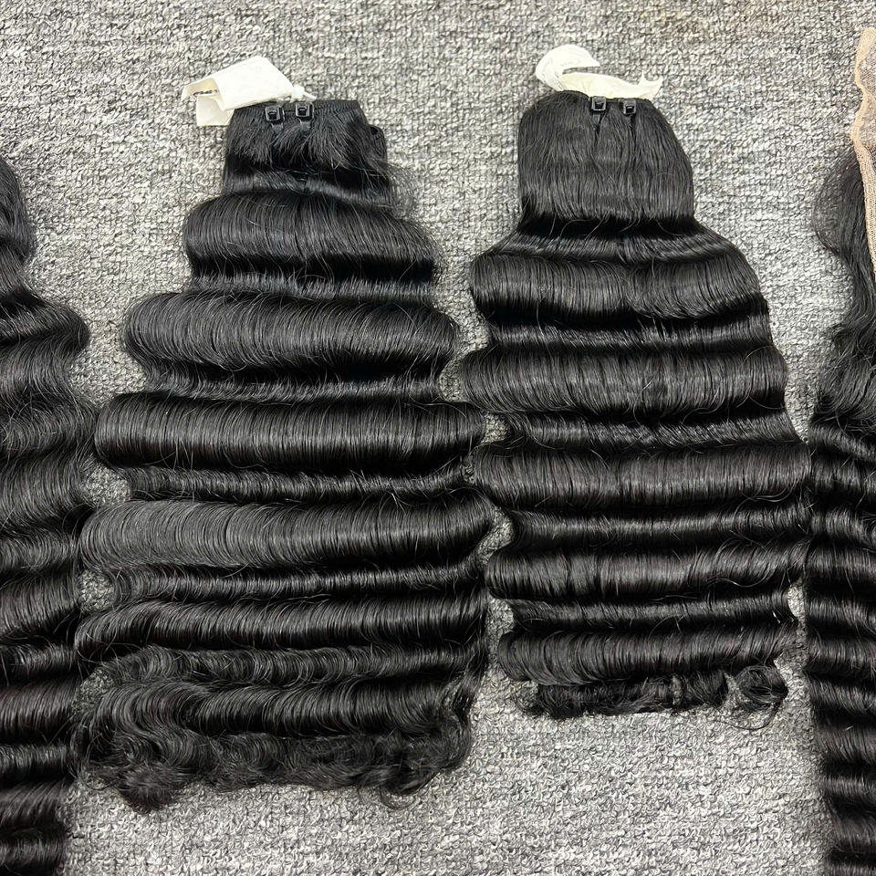 Extensions de cheveux humains vierges 100% à cuticule alignée, à double tirage, à ondulation profonde et à double tirage, vendeurs de paquets de cheveux en gros