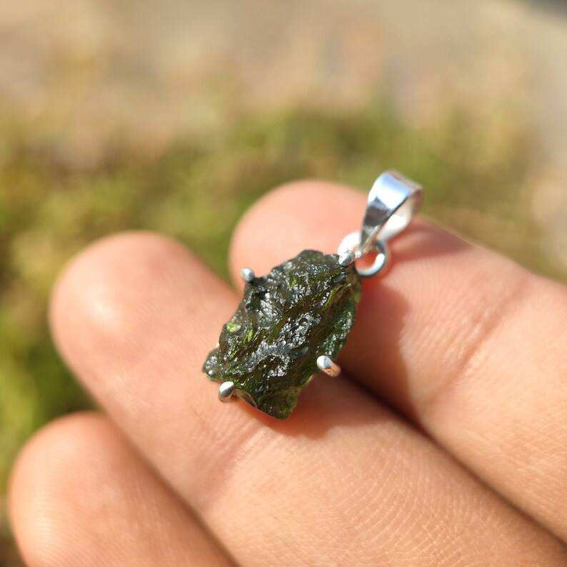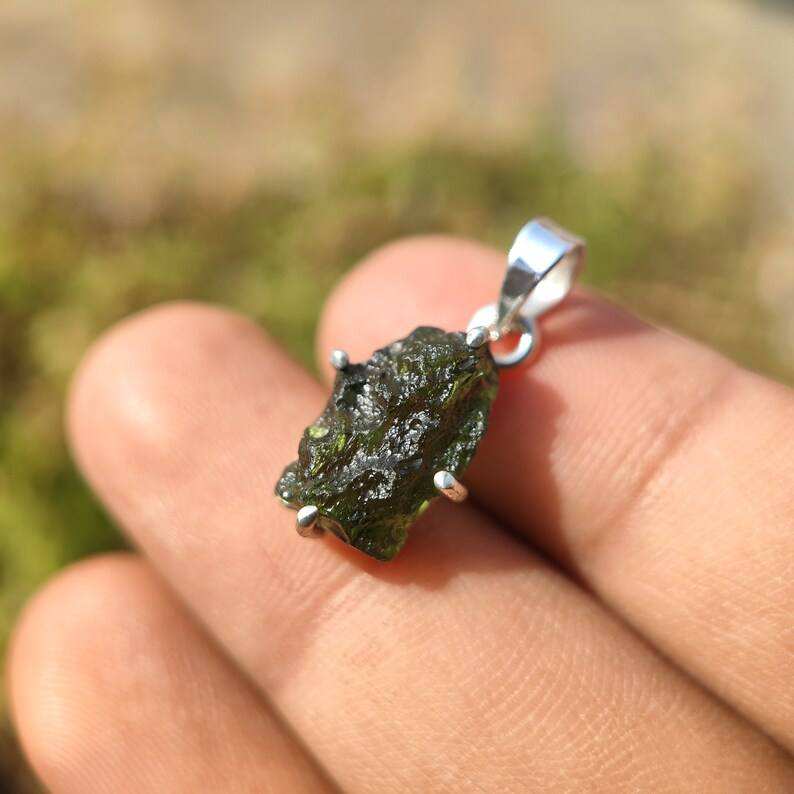 Pendentif en cristal de moldavite brute Collier de moldavite fait à la main Bijoux de guérison authentiques Cadeau tendance élégant pour elle