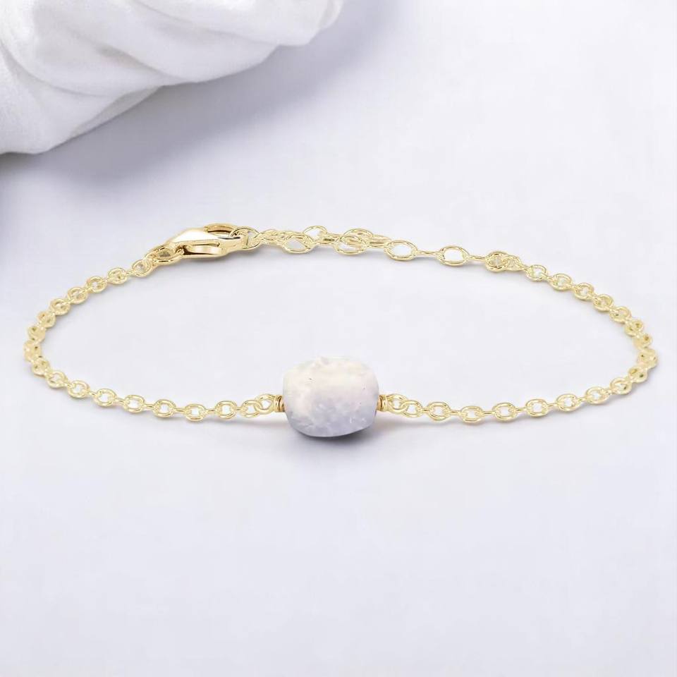 Bracelet chaîne à maillons fait main en pierre de lune arc-en-ciel brute - Bijou en argent sterling 925 plaqué or avec pierres précieuses