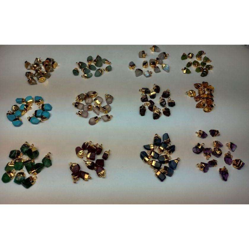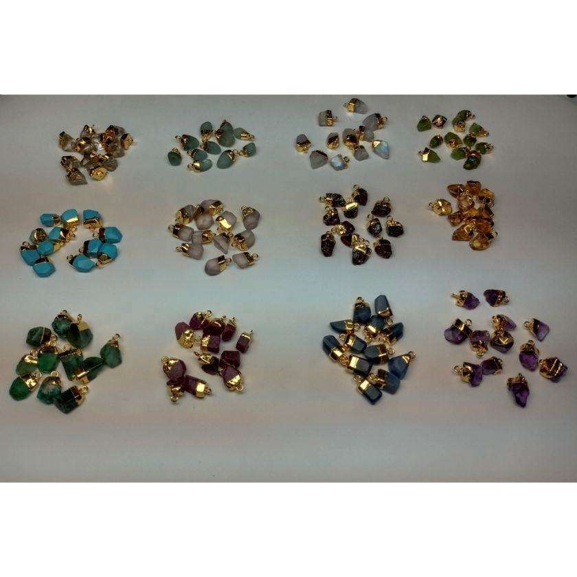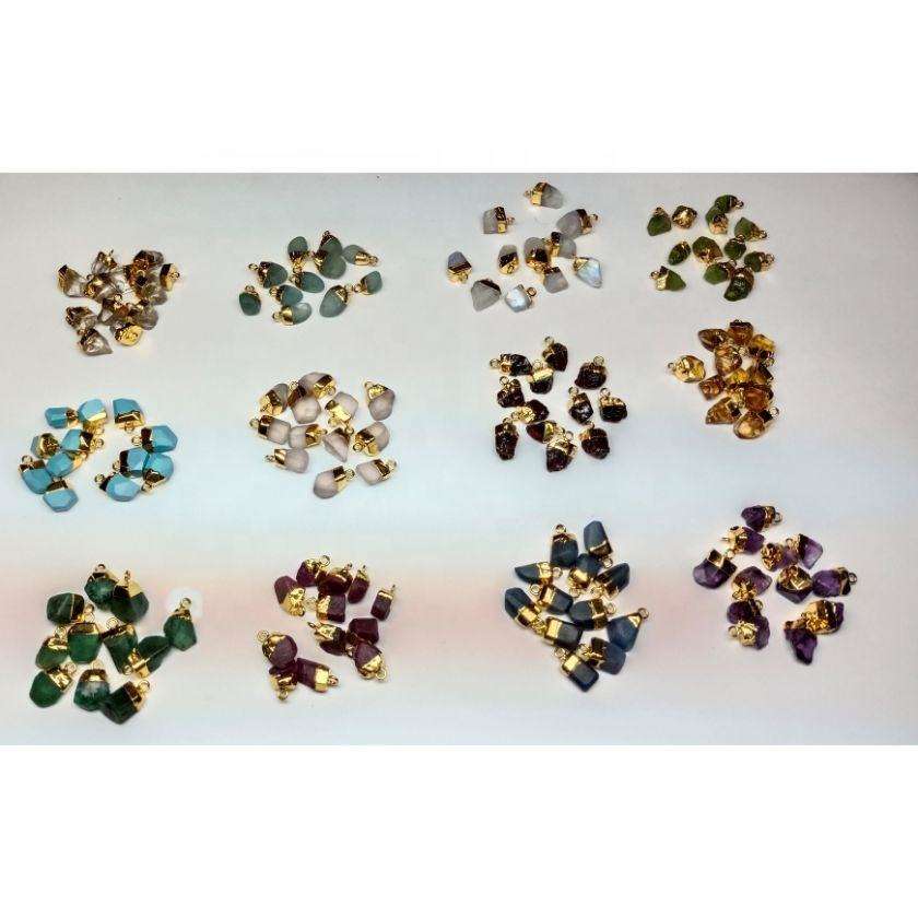 Pendentifs Breloques en Pierre de Naissance Naturelle de Haute Qualité, Électroplaqués Or, Bruts, Non Taillés, avec Effet de Couleur Changeante, Taille de 7mm à 12mm