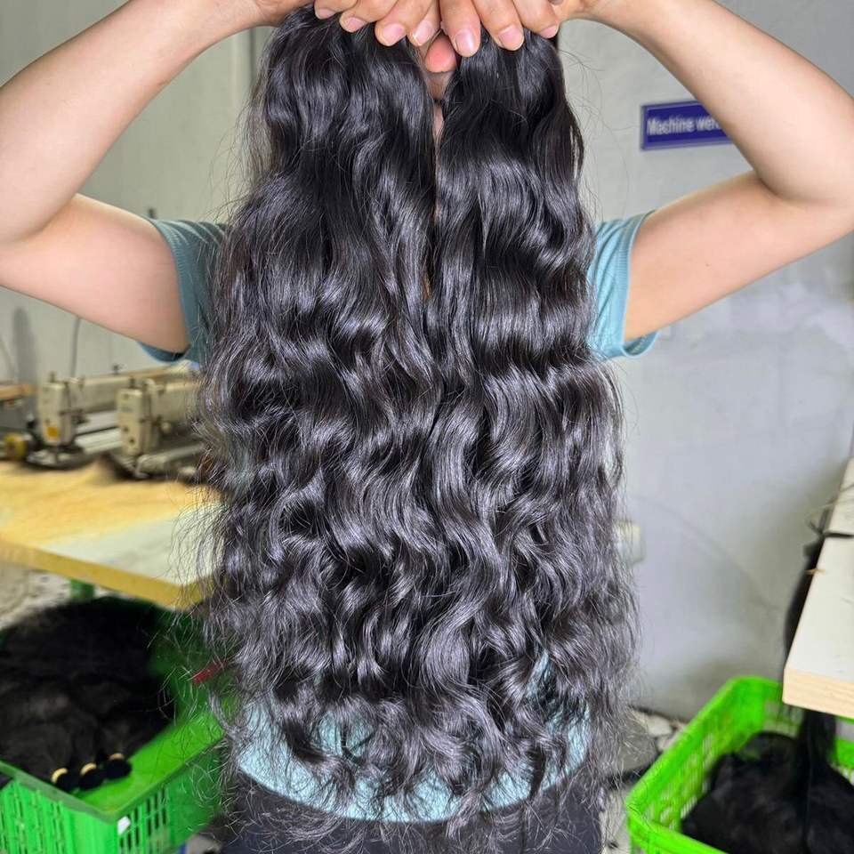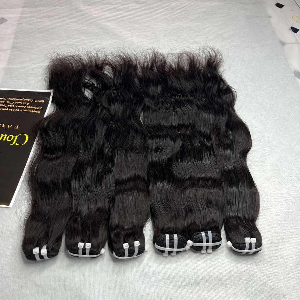 Cheveux humains bruts non traités, cheveux ondulés naturels, cheveux vietnamiens alignés dans le sens des cuticules, mèches brutes, extensions de cheveux humains