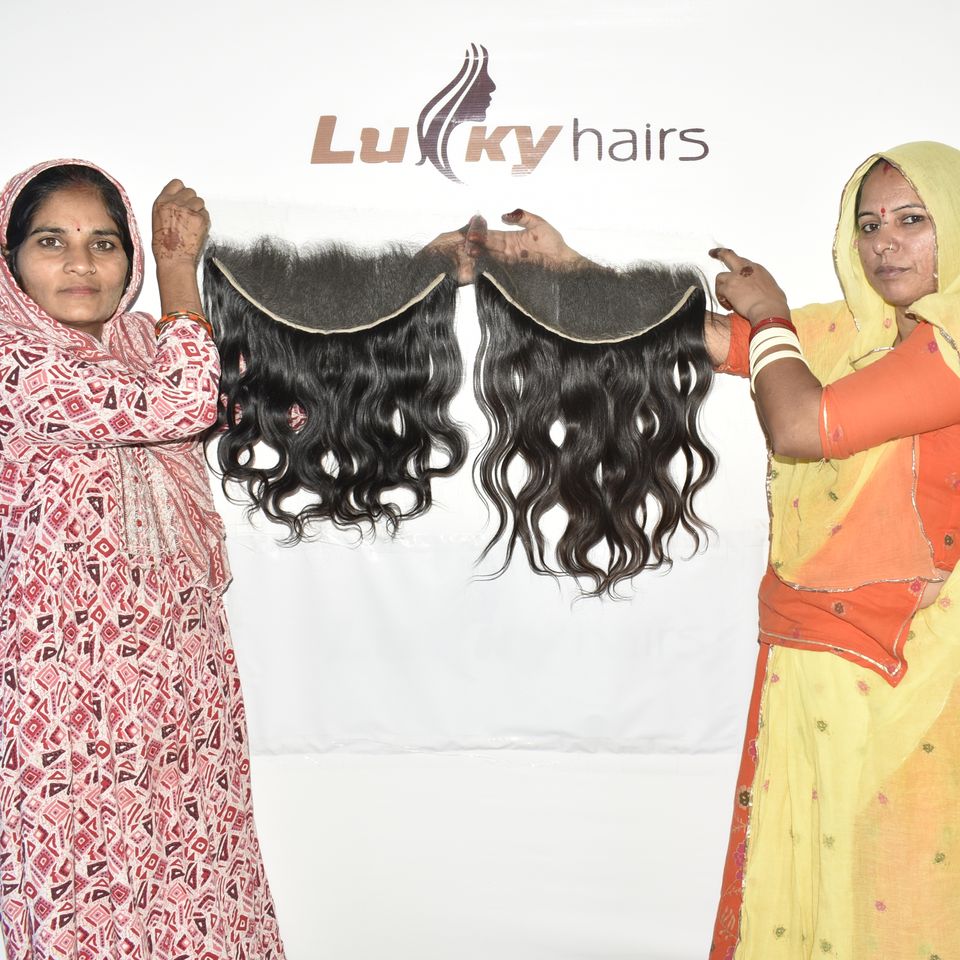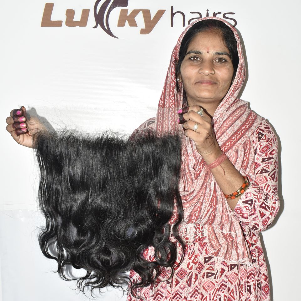Extensions de cheveux naturels indiens bruts non traités, frontale Bodywave, Remy doux, cuticules alignées, aspect naturel, double trame