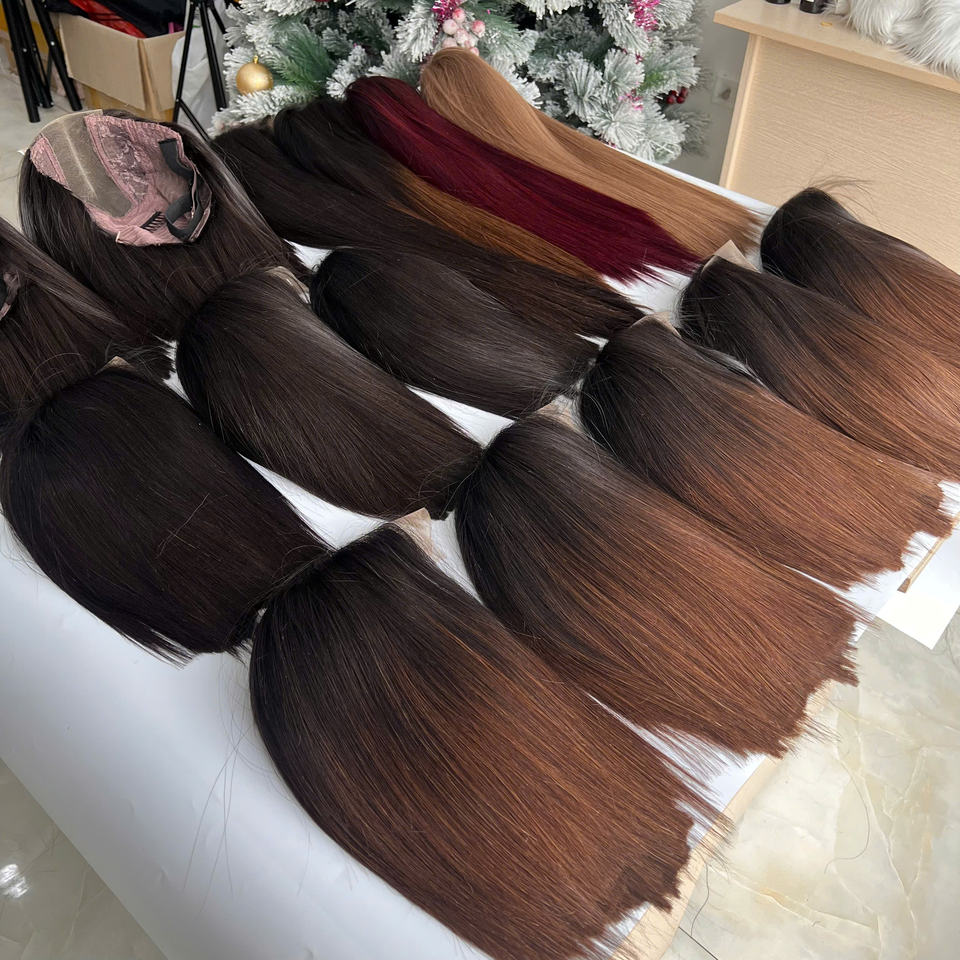 Cheveux vietnamiens bruts Super Double dessiné os droit pointe brune couleur chaude perruques avant de lacet perruques de cheveux humains sans colle