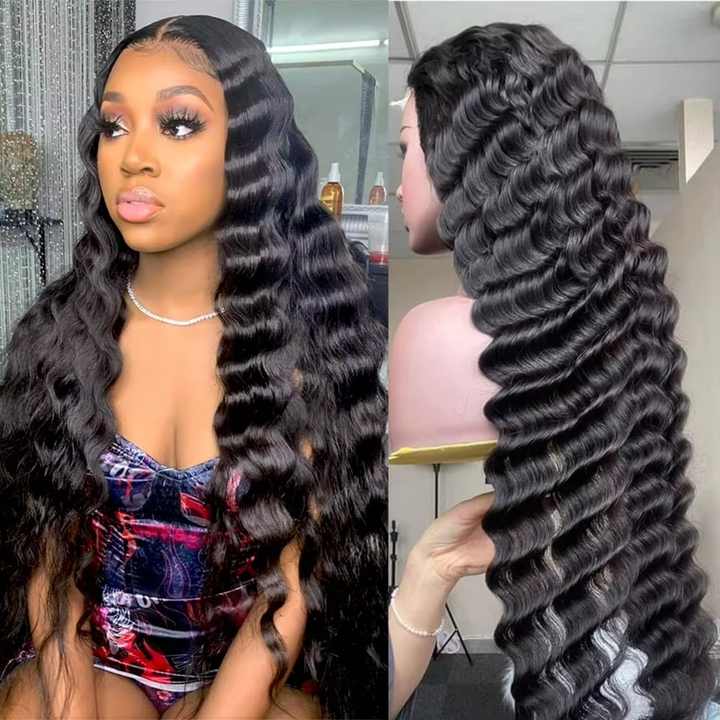 Perruque en cheveux vierges vietnamiens, vague profonde, dentelle frontale 13x4, perruques en cheveux humains pour femmes noires, dentelle complète pré-épilée, perruques en dentelle frontale bouclées